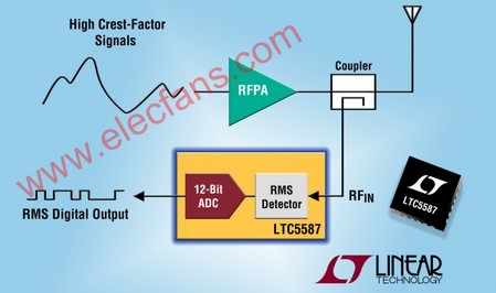 LTC5596 是一款高準(zhǔn)確度 RMS 功率檢波器,可提供從 100MHz 至高達(dá) 40GHz 的非常寬的 RF 輸入帶寬。這使得該器件適合眾多的 RF 和微波應(yīng)用,例如:點(diǎn)對(duì)點(diǎn)微波鏈路、儀表和功率控制應(yīng)用。