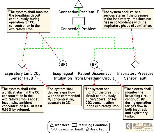 追蹤需求到模型元件的第一步是將文本需求與建模環(huán)境相關(guān)起來。模型內(nèi)的一個(gè)需求元件儲(chǔ)存需求,并保持除其它相關(guān)信息如需求ID、優(yōu)先級(jí)、安全完整性級(jí)別及風(fēng)險(xiǎn)等之外的描述需求的文本。對(duì)能儲(chǔ)存的數(shù)據(jù)類型沒有限制。需求和模型之間保持同步化,從而任何一方的更改都能反映到另一方。從需求到滿足這些需求的模型元件的可追蹤性能在模型內(nèi)表述出來。憑借這些信息,能生成需求覆蓋報(bào)告或進(jìn)行設(shè)計(jì)改變的影響分析。例如,能生成一個(gè)UML資料,定義了故障樹分析圖表。模型內(nèi)還能進(jìn)行安全性和風(fēng)險(xiǎn)分析。圖2展示了故障如何被追蹤到與故障相關(guān)的設(shè)計(jì)要求??蛇M(jìn)行更進(jìn)一步的模型信息分析來說明覆蓋鴻溝。