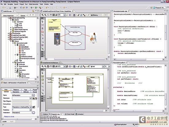 UML圖表內(nèi)的信息被存儲(chǔ)在一個(gè)模型儲(chǔ)存庫內(nèi),這極大地?cái)U(kuò)展了圖表原僅作為插圖之用的作用(見圖1)。一張圖表上的信息變化被模型儲(chǔ)存庫所反映,并傳送給其它圖表以反映同樣的信息。例如,假定設(shè)計(jì)中有一級(jí)名為“Pump”,同一級(jí)出現(xiàn)在兩個(gè)不同的圖表內(nèi)。在一張圖中把“Pump”名改為“InfusionPump”將會(huì)在另一張圖中自動(dòng)變化過來。