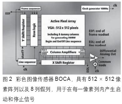 ????為了制造出新型的一次性內(nèi)窺鏡(圖1),德國Kissing市的STMMedizintechnik公司[4]需要低成本圖像傳感器,而這種傳感器只有使用CMOS技術(shù)才能生產(chǎn)。為此,CMOS圖像傳感器領(lǐng)域的專家賽普拉斯/FillFactory利用0.35μmCMOS加工技術(shù)成功開發(fā)出了小型彩色圖像傳感器BOCA。BOCA擁有9mm2傳感器面積,由512×512各邊長6μm的方形像素組成。這種傳感器高達(dá)58%的填充因子是產(chǎn)品具備高感光度的有力保證(圖2)。????
