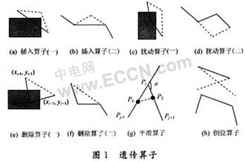 (4)以設(shè)定的概率對(duì)新產(chǎn)生的子代個(gè)體進(jìn)行變異、插入、擾動(dòng)、刪除、平滑的操作。此過程中,采取預(yù)選擇機(jī)制,比較子串和父串適應(yīng)度的大小,如果子串的適應(yīng)度高于父串的適應(yīng)度,就替換父串;否則維持父串不變;