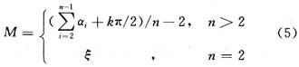 式中:ξ為一個(gè)趨于零的常數(shù)(ξ>0);αi(0≤αi≤π,i=2,3,…,n-1)表示兩向量AC,CB之間的夾角,B,C點(diǎn)的坐標(biāo)分別為(xi-2,yi-1),(xi,yi),(xi-1,yi-1);k為αi中大于或等于π/2的個(gè)數(shù),即當(dāng)某一夾角大于或等于π/2時(shí),對(duì)適應(yīng)度進(jìn)行懲罰。當(dāng)n=2時(shí),路徑為起始點(diǎn)與終止點(diǎn)的連線。若其可行,則M值趨于0。可以看出,M值越小,路徑的平滑度越好。