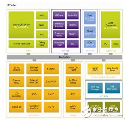 在這類產(chǎn)品中不需要運(yùn)行操作系統(tǒng),但需要MCU支持彩屏顯示,且具有較強(qiáng)數(shù)據(jù)運(yùn)算性能和AD等模擬功能。NXP Cortex-M3/M4集成LCD控制器產(chǎn)品LPC43xx/LPC18xx/ LPC178x系列是非常合適的選擇,尤其是M4內(nèi)核LPC43xx具有浮點(diǎn)運(yùn)算功能,性能更為強(qiáng)大,下面是這三個(gè)系列產(chǎn)品介紹: