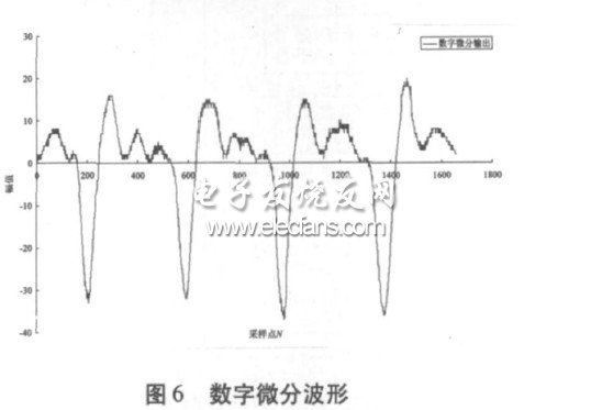 3)利用脈搏波形態(tài)上具有陡峭上升沿的特點,通過微分運算將其突出出來,部分波形如圖6所示。