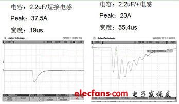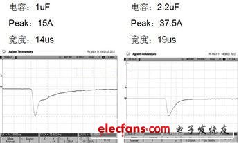 1、電容增大,由于ESR和容量的共同影響,導(dǎo)致開機(jī)脈沖Peak增大,脈沖寬度也增加