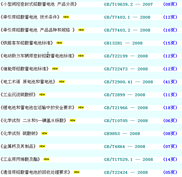 最新國內(nèi)外鉛酸蓄電池及原材料標(biāo)準(zhǔn)(更新日期2009.10)