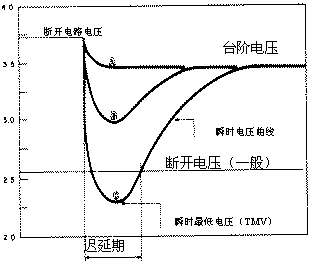 圖 3.1.1-1 瞬時電壓曲線 – 標(biāo)準(zhǔn)技術(shù)電池 ????然而,一旦電池開始放電,鈍化膜的厚度就逐漸減少,電阻回到一個穩(wěn)定的值,電池也達(dá)到了它的臺階電壓.