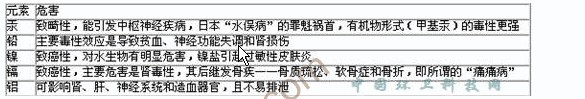 表1廢電池中的重金屬及其對人體的危害