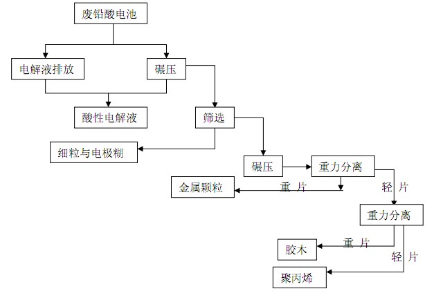 規(guī)范化的再生廠家的鉛酸蓄電池的拆解要經(jīng)過(guò)圖所示的步驟,在拆卸、碾壓和重力作用下,把廢鉛酸電池分為廢酸性電解液、電極糊、金屬顆粒、膠木和聚丙烯等。