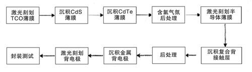 圖4 碲化鎘薄膜太陽能電池組件制備工藝流程圖