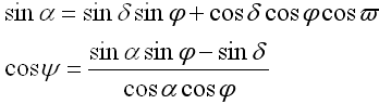 雖然太陽在天空中的位置時刻都在變化,但其運行卻具有嚴格的規(guī)律性,在地平坐標系中,太陽的位置可由高度角α與方位角ψ來確定,公式如下: