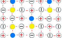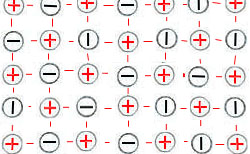 圖中,正電荷表示硅原子,負電荷表示圍繞在硅原子旁邊的四個電子。