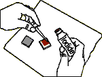 ??? 由染料著色的TiO2為電子流出的一極(即負極)。正電極可由導電玻璃的導電面(涂有導電的SnO2膜層)構成,利用一個簡單的萬用表就可以判斷玻璃的那一面是可以導電的,利用手指也可以做出判斷,導電面較為粗糙。如圖所示,把非導電面標上‘+’,然后用鉛筆在導電面上均勻地涂上一層石墨。