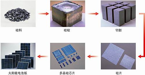 ??? 通常的晶體硅太陽能電池是在厚度350~450μm的高質量硅片上制成的,這種硅片從提拉或澆鑄的硅錠上鋸割而成。