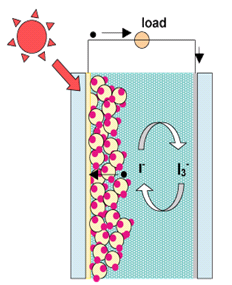 ??? 以染料敏化納米晶體太陽能電池(DSSCs)為例,這種電池主要包括鍍有透明導電膜的玻璃基底,染料敏化的半導體材料、對電極以及電解質等幾部分。