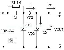 ????? 電容降壓式簡易電源的基本電路如圖1 ,C1 為降壓電容器,D2 為半波整流二極管,D1 在市電的負(fù)半周時給C1 提供放電回路,D3 是穩(wěn)壓二極管,R1 為關(guān)斷電源后 C1 的電荷泄放電阻。在實(shí)際應(yīng)用時常常采用的是圖2 的所示的電路。當(dāng)需要向負(fù)載提供較大的電流時,可采用圖3 所示的橋式整流電路。