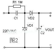 ??? 2、限流電容須接于火線,耐壓要足夠大(大于400V),并加串防浪涌沖擊兼保險電阻和并放電電阻。