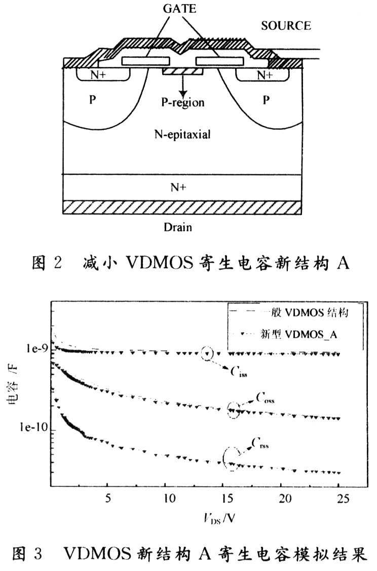 ??? 本文提出一種減小VDMOS寄生電容,提高其動態(tài)特性的新結(jié)構(gòu)。并用TCAD(ISE)軟件對其模擬。從模擬分析結(jié)果可看出,新型結(jié)構(gòu)A與傳統(tǒng)VDMOS相比,能有效減小反饋電容及柵電荷,提高VDMOS器件的開關(guān)速度,提高器件的動態(tài)性能。