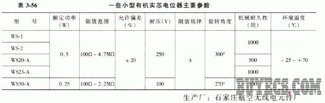 表3-56 列出了一些小型有機實芯電位器的主要參數(shù),它們的外形如圖3-82 所示。