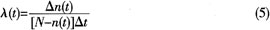 其中,△n(t)是在t~t+△t時(shí)間內(nèi)失效的產(chǎn)品數(shù),這樣,f(t)在0~t時(shí)間內(nèi)的積分應(yīng)等于: