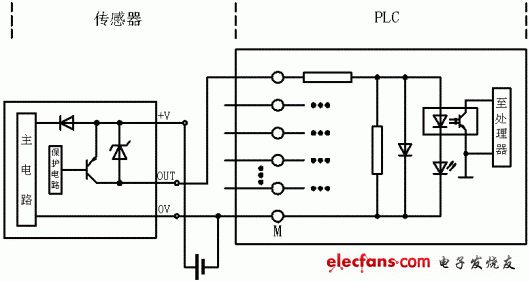 圖10 NPN集電極開路輸出和PLC的連接