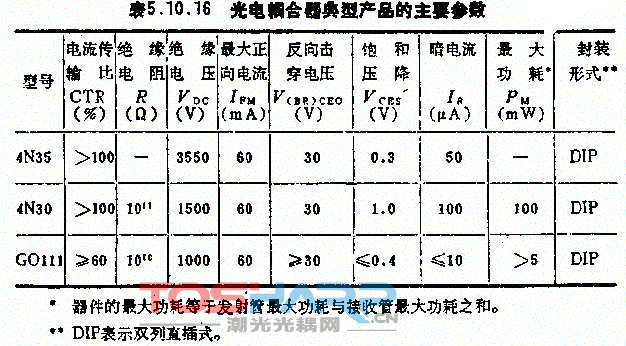 ??????????????????????????????? 表1典型線性光耦合器的主要參數(shù)