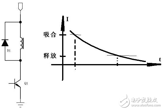 實際中的二極管及線圈都不是理想的,所以,它是可以釋放的。繼電器的吸合到釋放是由線圈中的電流決定的,如果二極管及線圈的等效電阻(直流)很小,那么它的釋放時間將很長,反之,則較短。