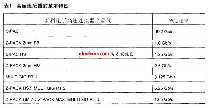 表1中列出的是典型的高速連接器的型號(hào)。在傳統(tǒng)并行同步數(shù)字信號(hào)的速率將要達(dá)到極限的情況下,高速串行方式是一個(gè)很好的解決思路。這使得低壓差分信號(hào)(LVDS)成為主要的下一代高速信號(hào)的電平標(biāo)準(zhǔn)。而高速連接器的選擇也成為高速率信號(hào)互聯(lián)要解決的主要問題。