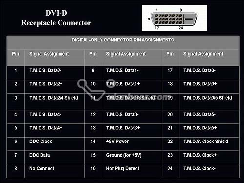 模擬視頻信號 (垂直掃描) 場同步信號 ( 在 DVI-D 中, 8 是 No Connect 就是 空腳, 什么也沒有連接 ) |