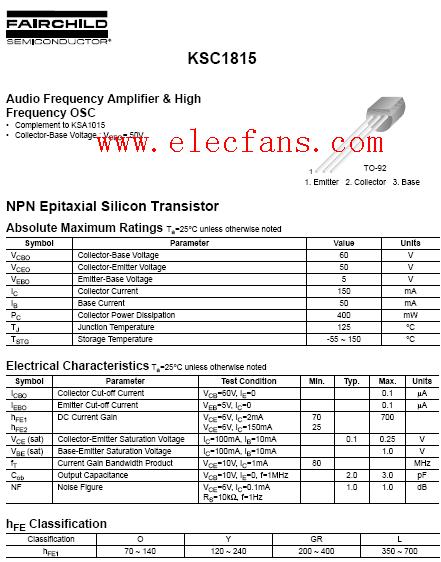 三極管1815引腳管腳圖及參數(shù)