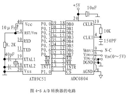 圖中,ADC0804 數(shù)據(jù)輸出線與AT89C51 的數(shù)據(jù)總線直接相連,AT89C51 的RD 、