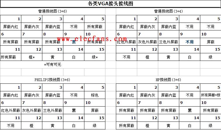 各類VGA接頭接線圖,普通接線圖,PHILIPS接線圖,HP接線圖