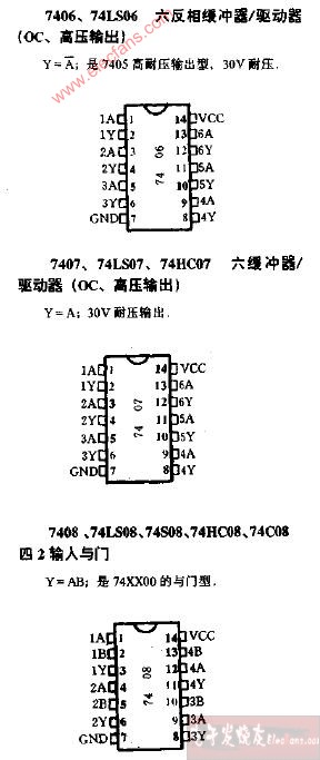 74HC08/7408引腳功能管腳定義圖 -六反相緩沖器/驅(qū)動(dòng)器