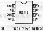 IR2117采用標準的雙列直插式DIR-8或小型雙列扁平表面安裝SOIC-8封裝形式,這兩種封裝形式的引腳排列相同,其引腳排列如圖1所示,各引腳的名稱、功能和用法如表1所列。