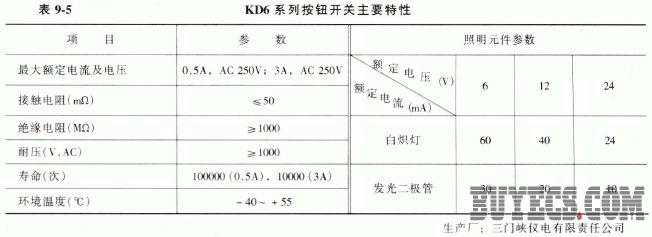 KD6 系列帶燈按鈕開關(guān)的主要特性見表9-5 ,其外形如圖9-5 所示。