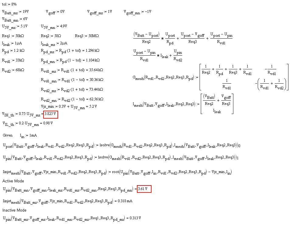 經(jīng)過(guò)計(jì)算我們發(fā)現(xiàn)有一個(gè)兩難的境地,如果加大Rvd2固然可以使分壓比變大,但同時(shí)也給單片機(jī)巨大的負(fù)擔(dān),因?yàn)橥ㄟ^(guò)單片機(jī)clamp二極管的電流也隨之增大,這是一個(gè)巨大的風(fēng)險(xiǎn)。