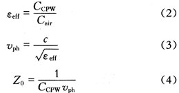 本文在CPW傳輸線與地平面間引入了兩條深度為20μm的襯底刻槽。由CPW傳輸線理論,當圖1(b)所示的CPW電路結構中傳輸線寬度W增加時,傳輸線與地平面間距G減小,CPW的分布電容CCPW增大,有
