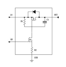 隨著半導(dǎo)體工藝技術(shù)的進步,單個分立器件MOSFET的導(dǎo)通電阻逐年下降,導(dǎo)通電阻小的可做到幾mΩ。集成負載開關(guān)中的MOSFET導(dǎo)通電阻稍大,目前可做到幾十mΩ左右。為了改善開關(guān)的性能,使開關(guān)慢啟動(慢啟動是指開關(guān)接通時,其電壓上升率是一個斜坡,防止有過大的沖擊電流)、快關(guān)斷。電壓上升的斜率有幾種:由工廠設(shè)定幾種斜率(啟動時間不同),供用戶選擇;由用戶在器件外設(shè)一電容,設(shè)定其啟動時間。為了快速關(guān)斷開關(guān),在負載開關(guān)中設(shè)有關(guān)斷時輸出有放電電路,如圖5所示。在負載開關(guān)關(guān)斷時,N-MOSFET導(dǎo)通,電容往N管放電,加速關(guān)斷時間。