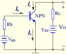 雙極型半導(dǎo)體三極管在工作時一定要加上適當(dāng)?shù)闹绷髌秒妷?。若在放大工作狀態(tài):發(fā)射結(jié)加正向電壓,集電結(jié)加反向電壓,如圖所示。