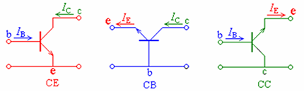 雙極型三極管有三個電極,其中兩個可以作為輸入, 兩個可以作為輸出,這樣必然有一個電極是公共電極。三種接法也稱三種組態(tài),見下圖