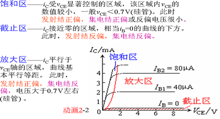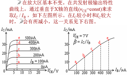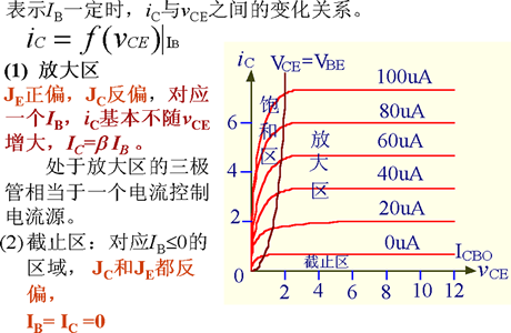 (3) VCE介于0~1V之間時,JC反偏不夠,吸引電子的能力不夠強。隨著VCE的增加,吸引電子的能力逐漸增強,iB逐漸減小,曲線向右移動。0