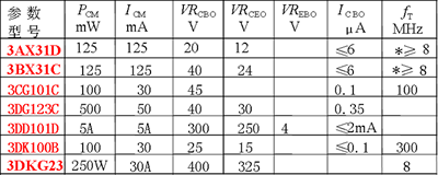 半導(dǎo)體三極管的參數(shù)分為三大類: 直流參數(shù),交流參數(shù),極限參數(shù)
