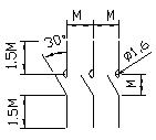 ????????交流接觸器主觸頭的圖形文字符號(hào)定制時(shí)先設(shè)計(jì)主觸頭圖形尺寸,為了與其它電器元件對(duì)應(yīng)尺寸一致,尺寸參考設(shè)計(jì)為:基本間距M=4.8mm,傾角a=30°,觸頭觸點(diǎn)直徑d=1.6mm,其余線間距取0.75M、1.5M等。