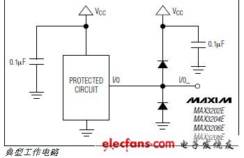 MAX3202E/MAX3203E/MAX3204E/MAX3206E為低電容、±15kV ESD保護(hù)二極管陣列,用于保護(hù)通訊線路的敏感電子部件。每個(gè)通道含有一對(duì)二極管,將ESD電流脈沖導(dǎo)引至VCC或GND。MAX3202E/MAX3203E/MAX3204E/MAX3206E能夠承受IEC 61000-4-2規(guī)定的ESD脈沖:±15kV人體模式、±8kV接觸放電以及±15kV氣隙放電模式。這些器件的每個(gè)通道具有5pF電容,非常適合用于高速數(shù)據(jù)I/O接口。