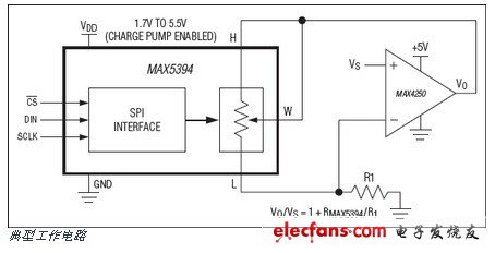 MAX5394單,256點波動,低電壓的線性抽頭數(shù)字電位器提供3月底至年底為10kΩ的電阻值,50KΩ,100KΩ。電位端子獨立供應(yīng)至5.25V單電源供電電壓從1.7V至5.5V(啟用電荷泵)。用戶控制的關(guān)斷模式,允許開放的H,W或L端子與抽頭位置設(shè)置零代碼,midcode,完整的代碼,或者在雨刮注冊中包含的值。停用內(nèi)部電荷泵,而不是允許電位端子超過電源電壓超過0.3V以上,2.6V和5.5V之間的供電電壓可達到超低靜態(tài)電流(<1μA)。MAX5394提供低50PPM /°C端至端溫度系數(shù),并設(shè)有一個SPI串行接口 小的封裝尺寸,工作電壓低,低電源電流,MAX5394的汽車級溫度范圍,特別適合設(shè)備。備份電池的便攜式消費市場,工業(yè)應(yīng)用和汽車市場。 MAX5394是提供無鉛,8引腳TDFN(采用2mm x 2mm)封裝。該器件工作在-40°C至+125°C汽車級溫度范圍。