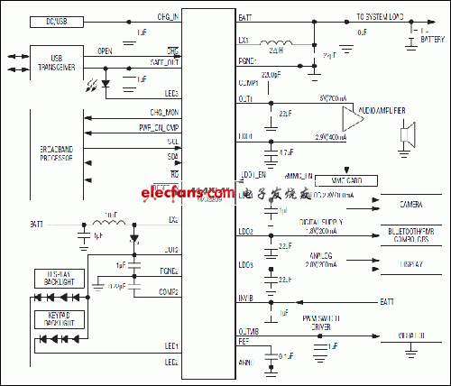 MAX8939電源管理IC包含了必要的物資支持基于英特爾移動通訊(IMC)61XX 3G平臺的手機(jī)設(shè)計和功能 。的MAX8939設(shè)計平臺所有外圍組件,也提供了必要的信號控制的61XX基頻處理器。 的集成的鋰離子充電器是保護(hù)高達(dá)28V的輸入和功能的USB供應(yīng)一個保護(hù)輸出電壓收發(fā)器。專有的熱調(diào)節(jié)電路,模具的溫度,或限制在快速充電的IC暴露在環(huán)境溫度較高時,允許的最大充電不損壞IC。一個專用的電流穩(wěn)壓器是駕駛充電指示燈 LED 4個可編程的低噪聲,低壓差線性穩(wěn)壓器(LDO)提供對噪聲敏感的外圍設(shè)備的供應(yīng)。一個高功率振動器驅(qū)動器在70 PWM水平和4個輸出電壓可編程。MAX8939還提供了兩個升壓轉(zhuǎn)換器,一個高功率,低電壓(5V)提供一個外部音頻放大器或照相機(jī)閃光燈,以及一個高電壓(28V)的顯示屏和鍵盤背光的供應(yīng) 。兩個集成的電流調(diào)節(jié)器25毫安提供獨(dú)立的斜坡上升和斜坡式控制,可編程通過I 2 C 的MAX8939是一種高度集成的IC,需要極少的外部元件,是在一個緊湊的2.5 ×3.0毫米,0.65毫米最大高度晶圓級封裝(WLP)。